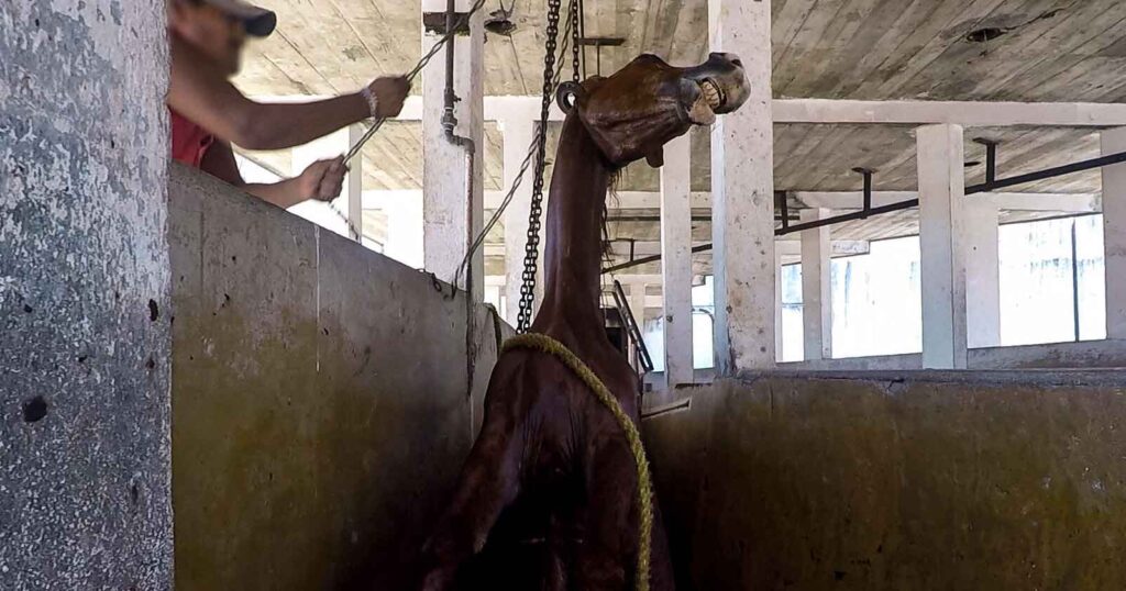 - Following the stunning process, Animal Equality investigators discovered that slaughter was frequently delayed beyond the 30-second requirement mandated by the Mexican Official Standard. As a result of these delays, horses were often killed while still conscious.