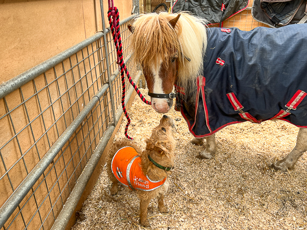 When it rains, Tiddles shivers and is miserable so I brought him in from the field to fit him with a rug, for emergencies.