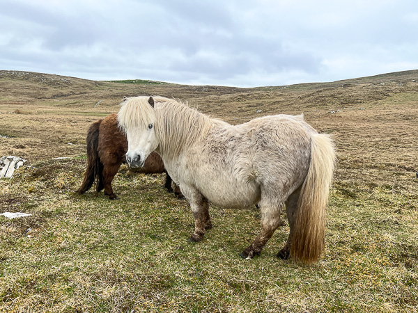 A few days’ back, Daisy and I moved their buckets across the wee burn (stream) so that the ponies would stop hanging around the fence and go off exploring to find food.