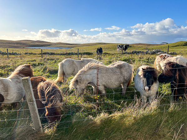 This is the nice grassy bit and the ponies have a herd of Shetland cows as neighbours, which they were slightly interested in.