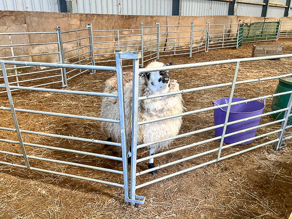 Ditto Lambie who hates eating with anyone as they always steal his food, so he has learned to go into the Minion’s indoor space to have his breakfast but this time I shut the gate on him.