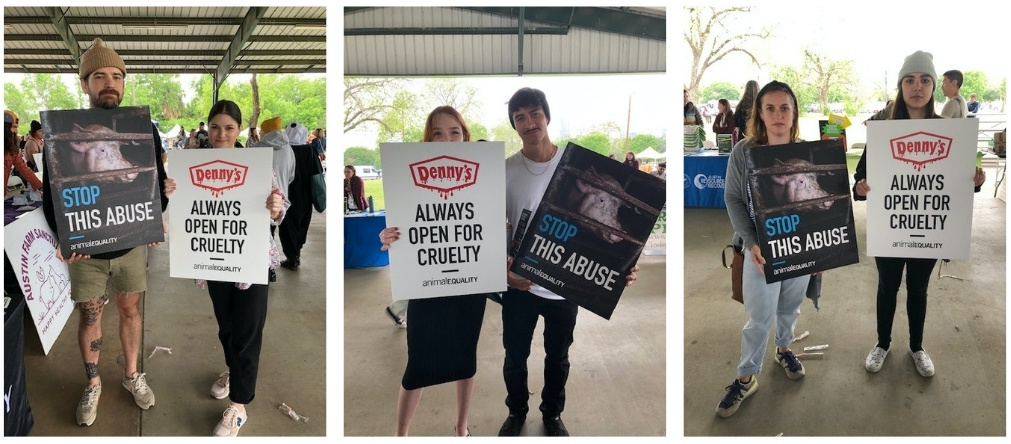 Attendees were also invited to snap a selfie with posters that called out the restaurant chain Denny’s for allowing extreme abuse in their pig supply chain. The Animal Equality campaign, which launched at the end of January at itsdinertime.com, calls out the popular diner for failing on its 2012 commitment to ban the use of gestation crates for pregnant mother pigs. Dozens of VegFest attendees took the chance to send a message to Denny’s, with each photo being posted on social media where we tagged the company. While people were learning about the campaign, Denny’s learned that their inaction on animal welfare was being exposed in the process.